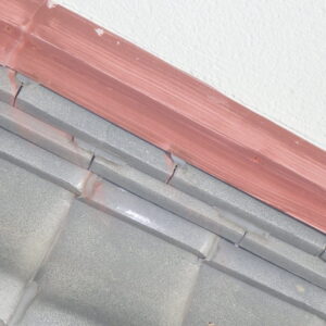 瓦の縦部分にもコーキングしていますが隙間があり雨水がはってしまうと出てこれなくなり雨もれ原因になっている状態