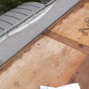 写真にはありませんが新たに新しいコンパネを張り防水シートを張り
