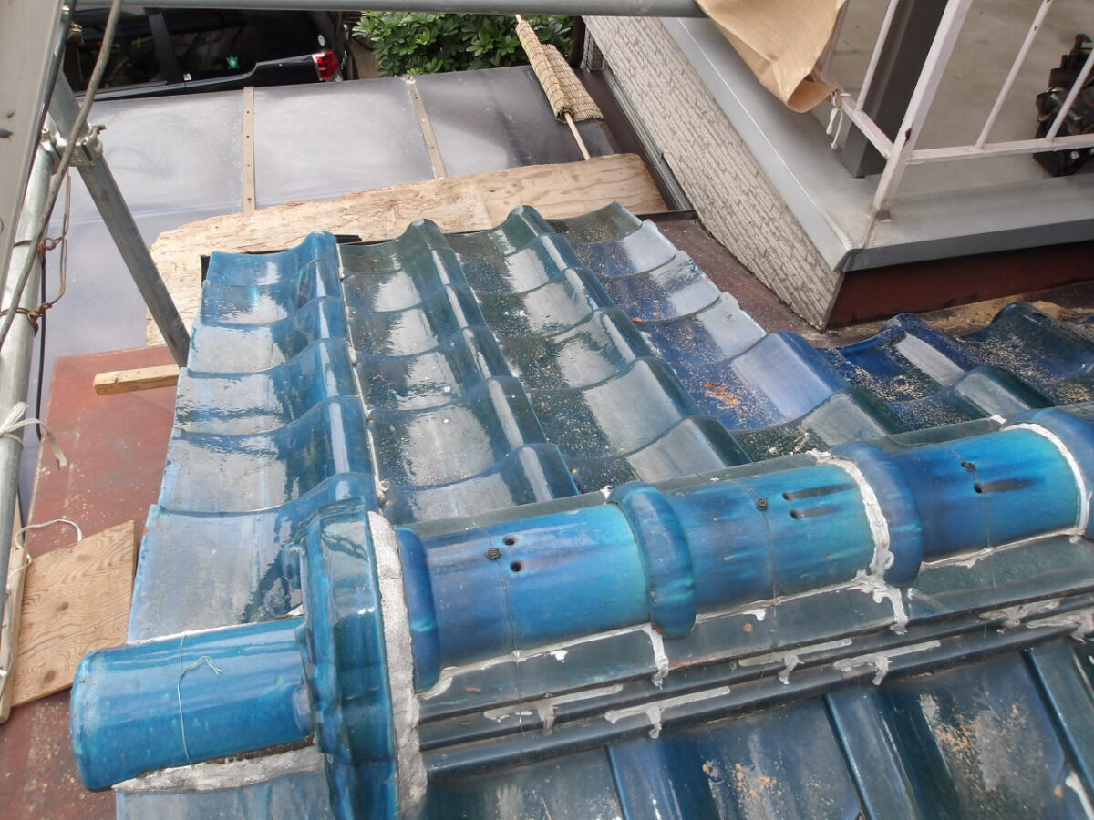 本日は1階部分(下屋)の瓦めくり~下地工事をしました。