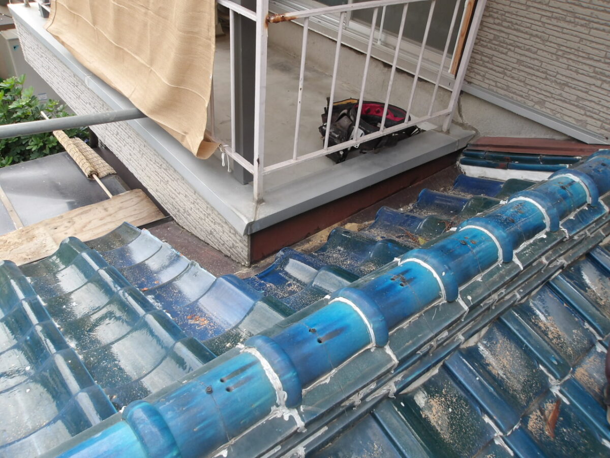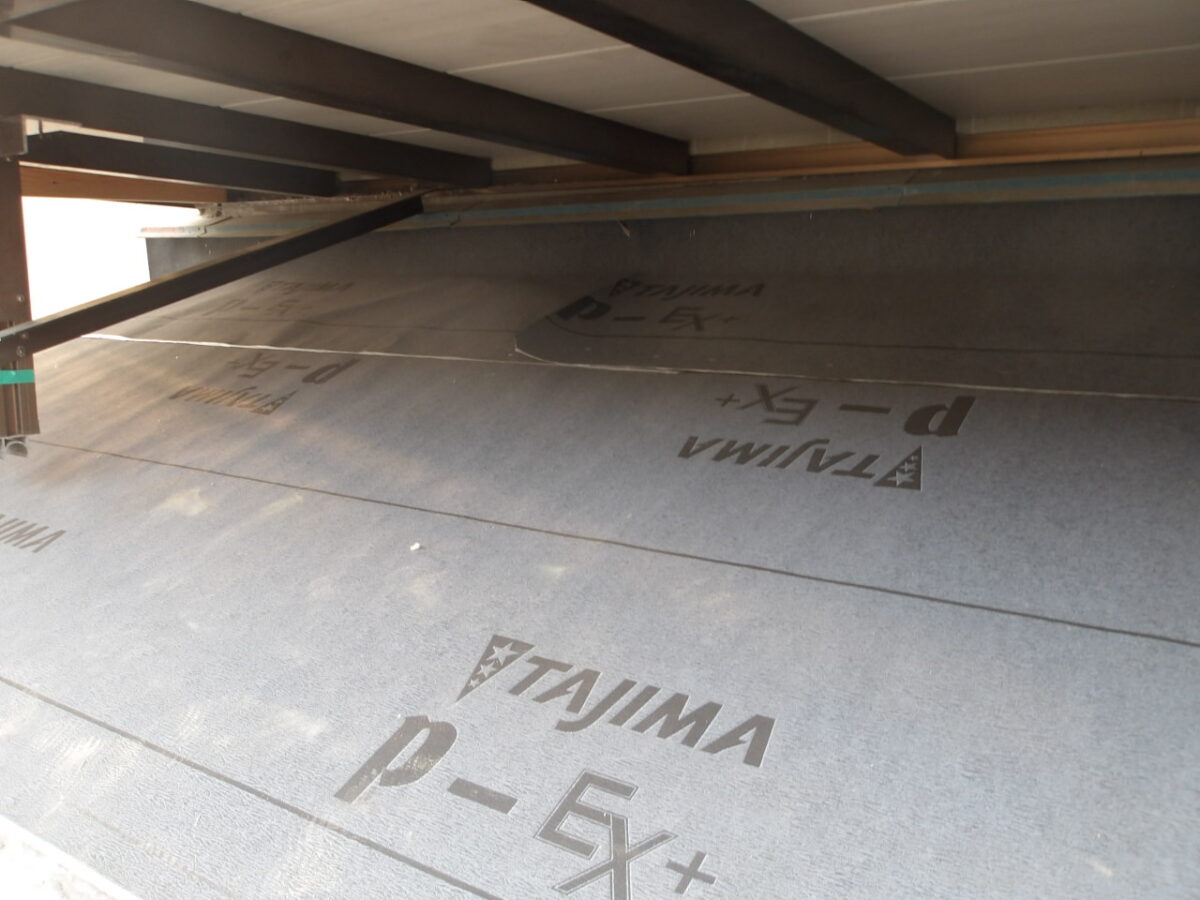 瓦をめくり壁際部分は既存の防水シートが立ち上がってなかったです。