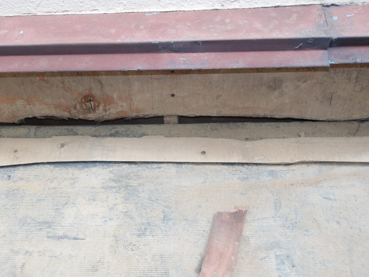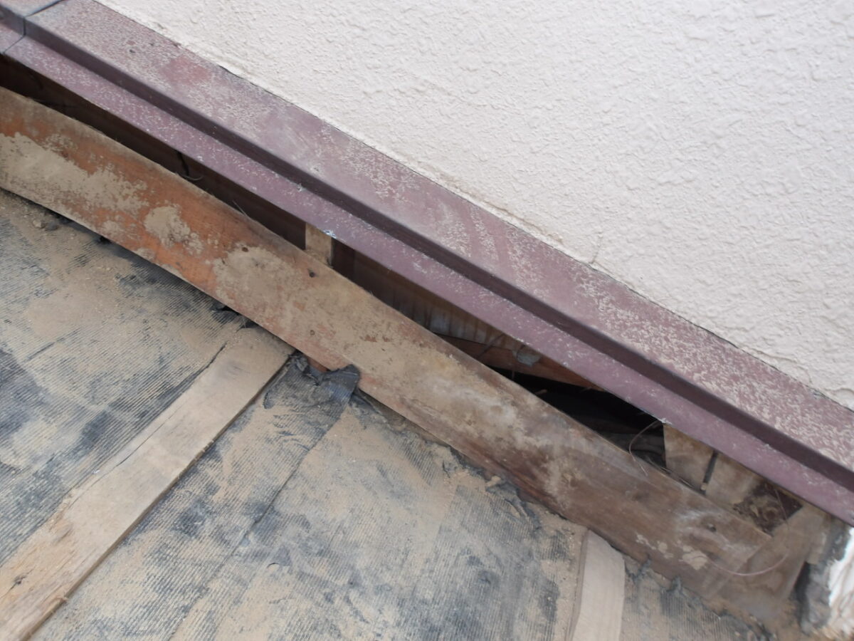 このように防水シートが立ち上がっていなくて壁際から雨もれすることが多いです。