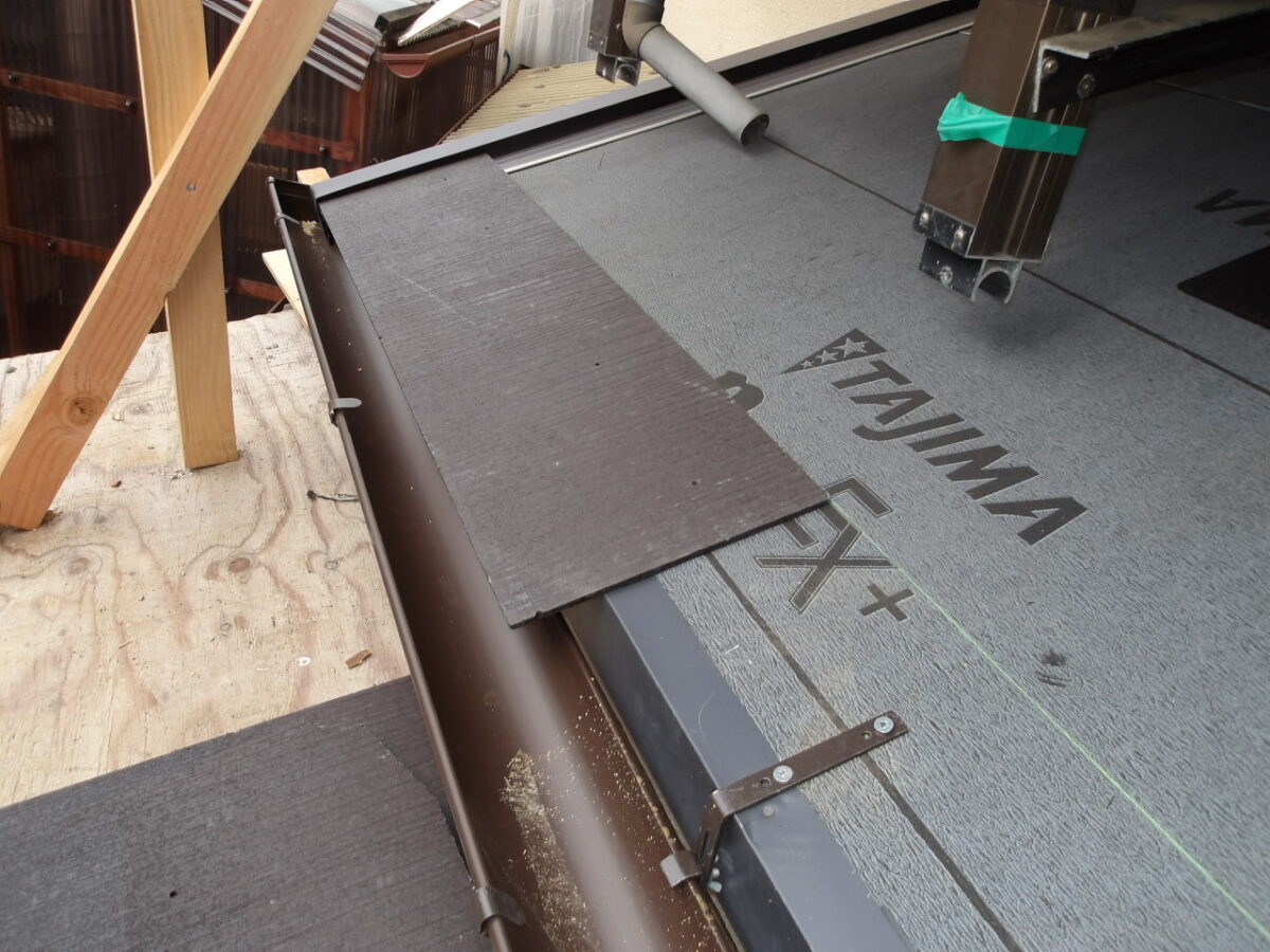 本日は1階裏面コロニアルグラッサ葺きと立樋取付をしました。