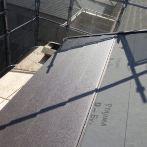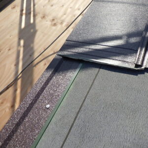 本日は2階部分の金属瓦((シルキーG2)メーカー:福泉工業)を葺いたのと