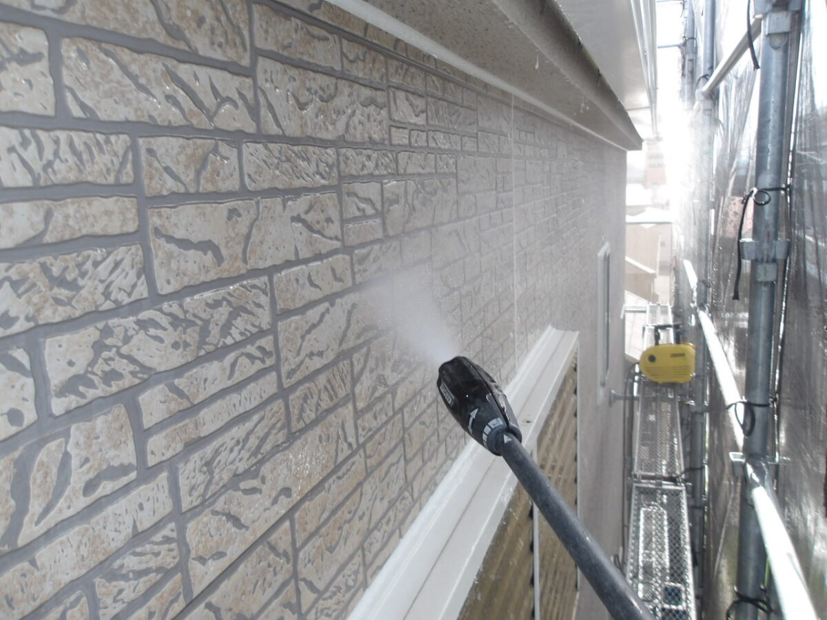 本日は外壁(窯業サイディング)を高圧洗浄しました。