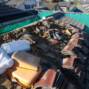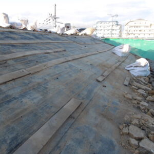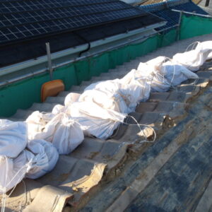 下地の既存ビニール防水シートは築年数が古くなると瓦土の重みで破れやすくなり雨もれに繋がります。