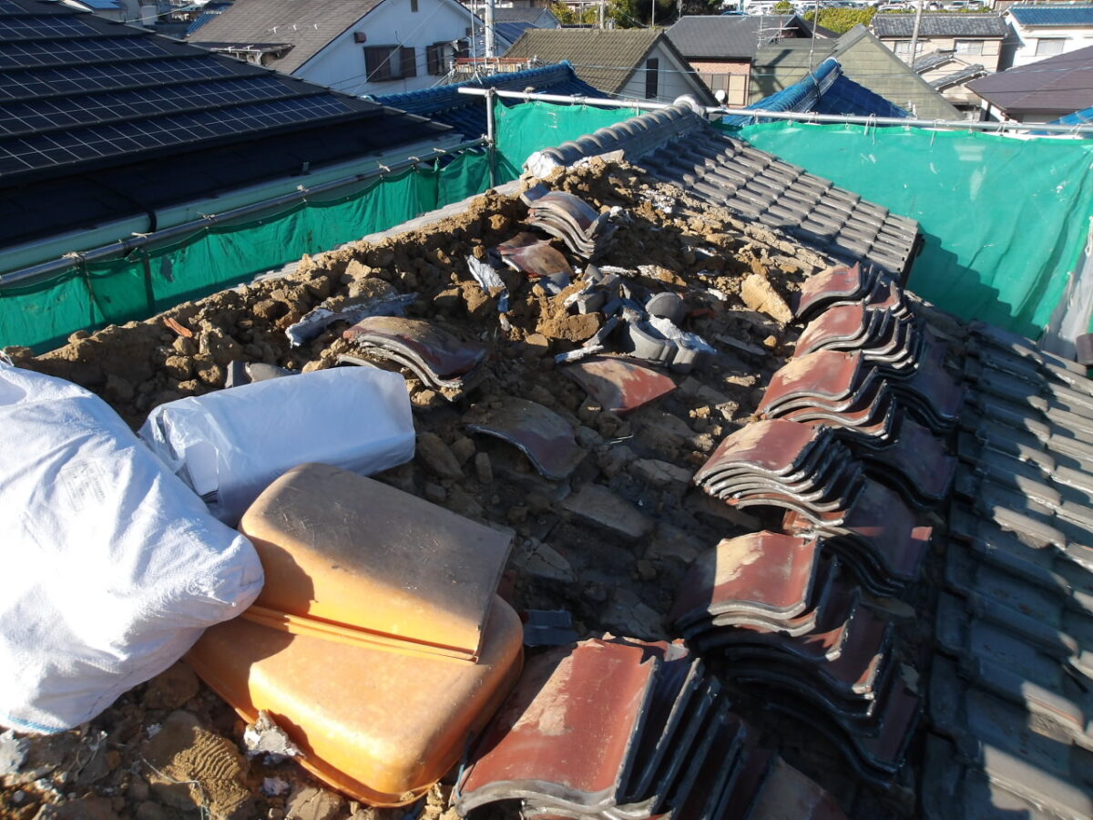 写真じゃわかりにくいかもしれませんが下地も瓦・土の重みで波打っています。
