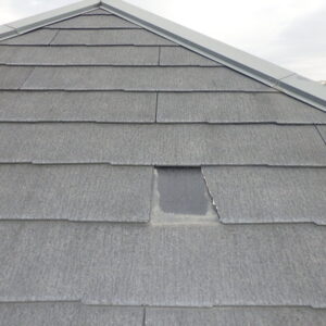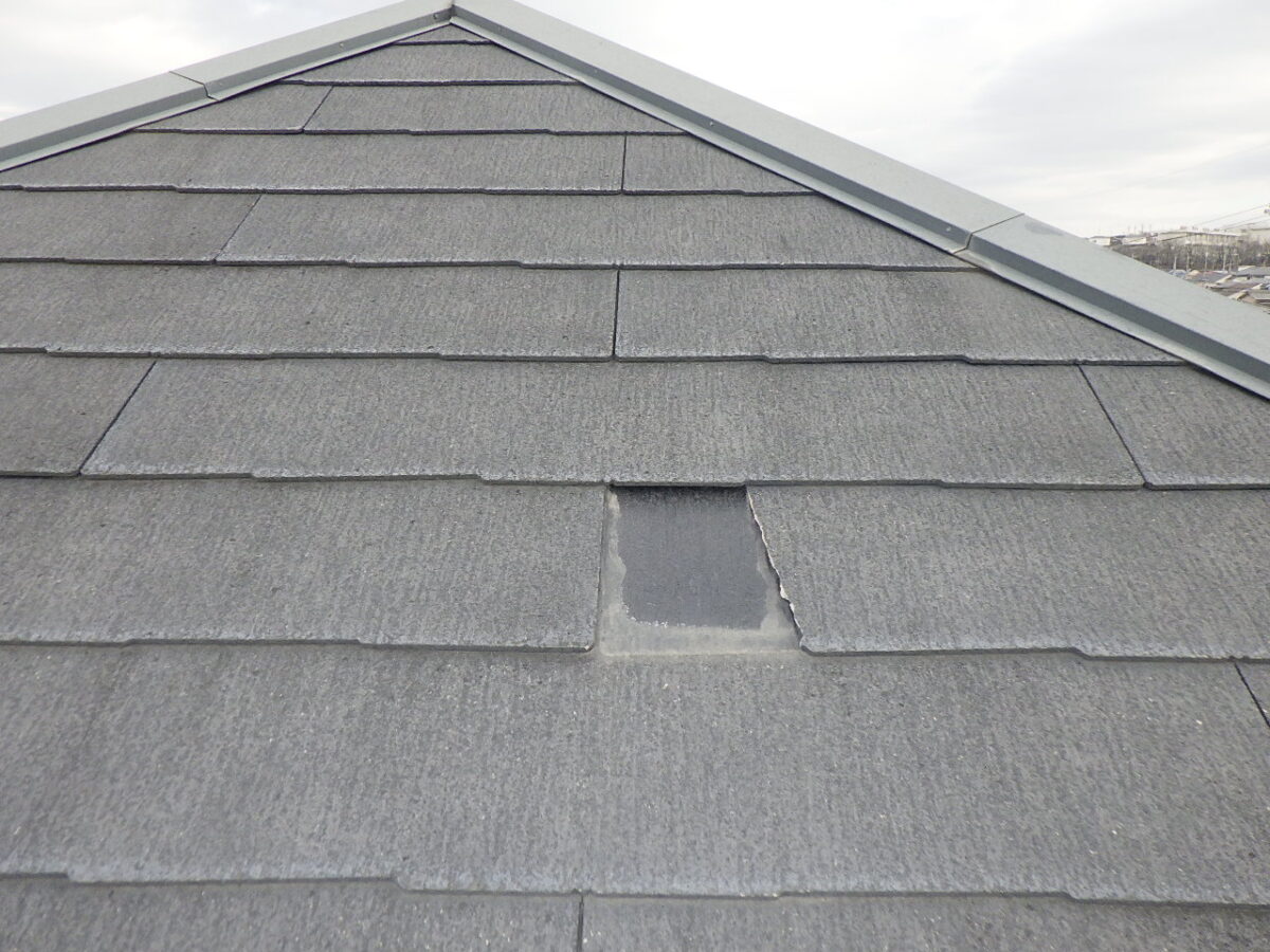 通常なら割れ部分だけ差し替えすることが可能な場合がありますが今回のカラーベスト補修部分が棟板金部分のため