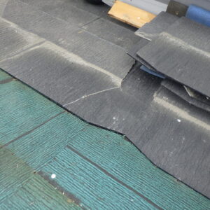 まず初めに棟板金及び棟木をとりはずし、既存カラーベストをめくりました。