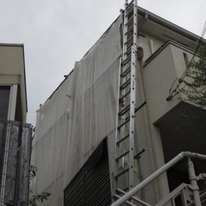 カラーベスト補修部分面に足場・ネットをしてから作業しました。