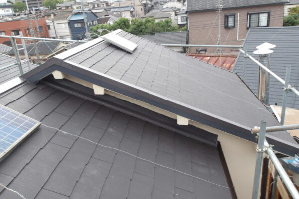 屋根葺き替え工事 雨樋取替工事 ベランダ防水 9日目 現場レポート 2025年10月21日 本日は最後の仕上げ工事及び足場ばらし作業をしました。 棟板金ビス止め 壁際水切りコーキング処理 元々のベランダ笠木(写真の白色?グレー?の所) 茶色に変更しました。 工事完了後は枚方市屋根補助金対象物件なので 市役所提出書類を3枚と・・・ 屋根葺き替え工事 雨樋工事 ベランダ防水 8日目 大阪府枚方市 現場レポート 2025年10月20日 本日は1階部分の仕上げとベランダ防水工事をしました。 ベランダ防水工事 ベランダ土間そうじ 壁際コーキング ※ベランダからの雨もれは壁際からが多いので当社は壁際を コーキング処理してから防水を塗ります。 プライマー(接着剤) 防水1回目 防水2回目 仕上がり &・・・ 屋根葺き替え工事及び雨樋工事 7日目 現場レポート 2025年10月18日 本日は1階裏面コロニアルグラッサ葺きと立樋取付をしました。 1階裏面はベランダテラスがあるため潜り込んでの作業で多少手間がかかりました。 立樋写真は途中から雨がぽつぽつ降ってきたため撮り忘れてしまいました💧 ・・・ 屋根葺き替え工事及び雨樋工事 6日目 現場レポート 2025年10月17日 本日は1階部分のコロニアルグラッサ葺きと2階部分仕上げをしました。 1階部分 2階部分 自社オリジナル棟換気板金取付 棟木取付 ※棟板金まで取付しましたが写真取り忘れのため仕上げのときに写真はアップ します。 ・・・ 雨のため事務作業(見積もり作成5件) お知らせ 2025年10月16日 本日は朝から雨のため現場はお休みにしまして 見積もり作成が溜まっていましたのでがんばりました。 ・庇軒天張り替え及び庇上部張り替え見積もり 1件 ・屋根葺き替え工事見積もり 1件 ・屋根重ね葺き工事見積もり 1件 ・屋根葺き替え工事及び外壁塗装見積もり 2件 作った後は各お客様に・・・ 屋根葺き替え工事及び雨樋工事 2階部分 5日目 現場レポート 2025年10月15日 本日は2階部分の屋根葺き替え工事及び雨樋取替え工事をしました。 既存の雨樋をはずし新たに軒樋 半丸105を付け替えました。 壁際に板金を取付 今回の屋根材はコロニアルグラッサになります。 分かりやすく言うとカラーベストです(笑) ブルーシート養生して本日の工事・・・ 屋根葺き替え工事及び雨樋工事 下屋部分 下地工事 4日目 現場レポート 2025年10月14日 本日は1階部分(下屋)の瓦めくり~下地工事をしました。 正面1階部分 瓦をめくり壁際部分は既存の防水シートが立ち上がってなかったです。 このように防水シートが立ち上がっていなくて壁際から雨もれすることが多いです。 ※10月10日などに2階部分で下地工事写真を投稿してますの・・・ 屋根葺き替え工事及び雨樋取替工事 3日目 現場レポート 2025年10月11日 本日は昨日の残りの2階部分の下地工事をしました。 ・・・ 軒天材はずれ修理依頼 診断 2025年10月11日 お電話をいただき本日軒天材はずれ修理依頼のため現場を見てきました。 玄関や窓サッシの上に庇と言われる瓦や鉄板で日差しをはいらないようにする所の 軒天部分(白く見える所)がめくれている状態でした。 見積もり内容は上部の瓦をめくり現状の軒天材をめくり新たに新しい軒天・・・ 屋根葺き替え工事及び雨樋工事 2日目 現場レポート 2025年10月10日 本日は昨日続きからの作業になります。 ブルーシート養生をはずして 昨日瓦及び粘土土を降ろした場所を下地工事しました。 昨日の部分の下地工事防水シートまで張り 反対の面を瓦・粘土土を取って本日もブルーシートを被せて工事完了でした。 ・・・ 屋根葺き替え工事 雨樋工事 枚方市屋根軽量化補助金使用現場 初日 大阪府枚方・・・ 現場レポート 2025年10月9日 本日は屋根の葺き替え工事現場に行ってきました。 屋根回りに足場を設置してからネットを取り付け 瓦をめくり 瓦の下の粘土土を袋に入れて産業廃棄物収集運搬のトラックに積み 本日は下地までいかなかったのでめくった所はブルーシートで養生して 本日の作業は終了になります。 ・・・ 今日は事務作業の日 お知らせ 2025年10月8日 本日は現場に行かず事務作業及びショールーム移転作業をしました。 午前中は昨日見に行った屋根重ね葺き及び外壁サイディング重ね張り見積もり作成 昼からはショールーム移転に伴うクーラー移動の準備 電気屋さんに電話すると 「クーラーのコンセントは何ボルトですか?」「移転先のクーラーつける・・・ 屋根診断 雨もれ診断 大阪府寝屋川市 診断 2025年10月7日 本日は屋根診断に行ってきました。 雨もれもしている事なので雨もれ確認して場所の特定をしてきました。 屋根部分は割れが多くカラーベストという屋根材は反っていました。 鉄板部分の棟釘は抜けかかっていますので棟を留めているための木材が腐り釘が抜けか・・・ ショール―ム移転に伴う屋根工事セール 11月分1件契約 残り2件 お得情報 2025年10月6日 以前告知いたしましたショールーム移転に伴う屋根工事お得セールの11月分が1件確定しました。 10月分は残り1件 11月分は残り2件